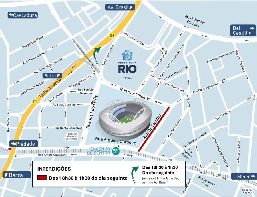 O Centro de Operações e Resiliência da Prefeitura do Rio informa que haverá operação de trânsito no entorno do Estádio Nilton Santos para partida entre Botafogo e Cruzeiro que acontece nesta quinta-feira (29/01), às 21h30, pelo Campeonato Brasileiro.