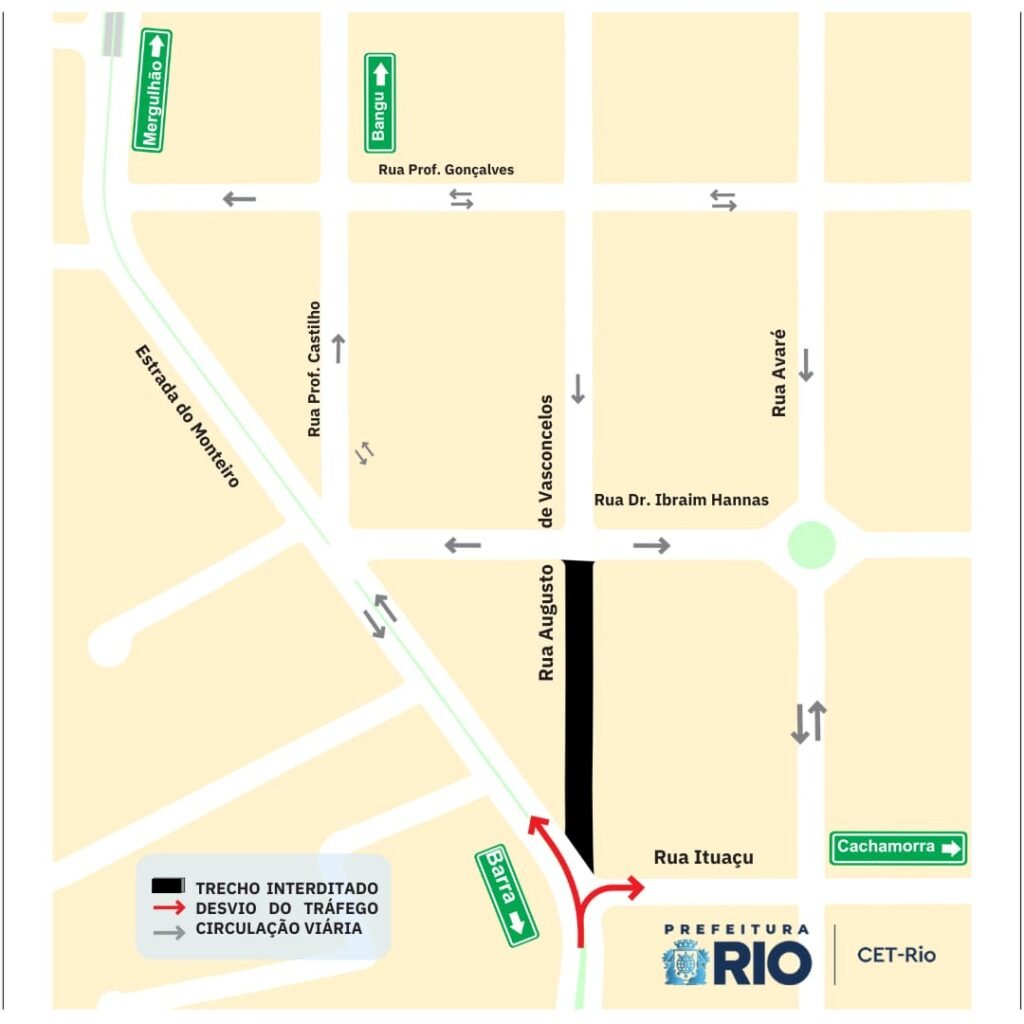 O trânsito será desviado para a Estrada do Monteiro, com acesso ao sentido Barra pelas ruas Professor Castilho, Professor Gonçalves, Avaré e Ibrahim Hannas.