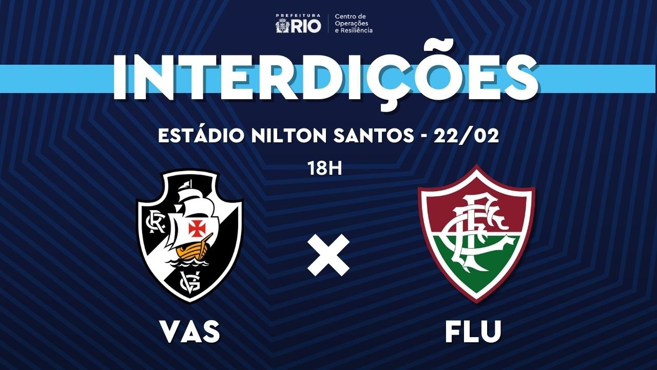 O Centro de Operações e Resiliência da Prefeitura do Rio (COR-Rio) informa que um esquema de trânsito foi elaborado pela CET-Rio para as vias no entorno do Estádio Nilton Santos, neste domingo (22/2), para a realização da partida Vasco x Fluminense, às 18h, pelo Campeonato Carioca. As interdições começam às 15h, com previsão de liberação às 22h. Além dos locais regulamentados com proibição de estacionamento, outras vias também estarão restritas ao estacionamento a partir das 10h.