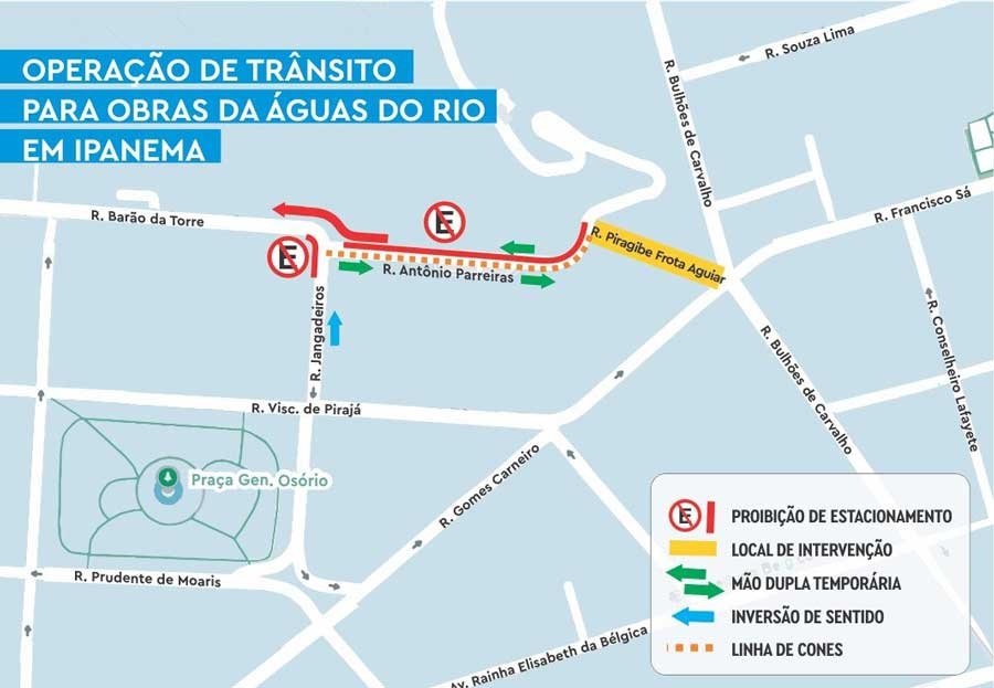 Haverá inversão de sentido da Rua Jangadeiros no cruzamento com a Rua Visconde de Pirajá, passando a funcionar no sentido das ruas Barão da Torre e Antônio Parreiras. Também será implantada mão dupla de direção na Rua Antônio Parreiras.